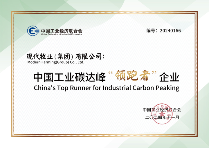 作为唯一的养殖业企业荣列 2024 中国工业碳达峰「领跑者」企业名单