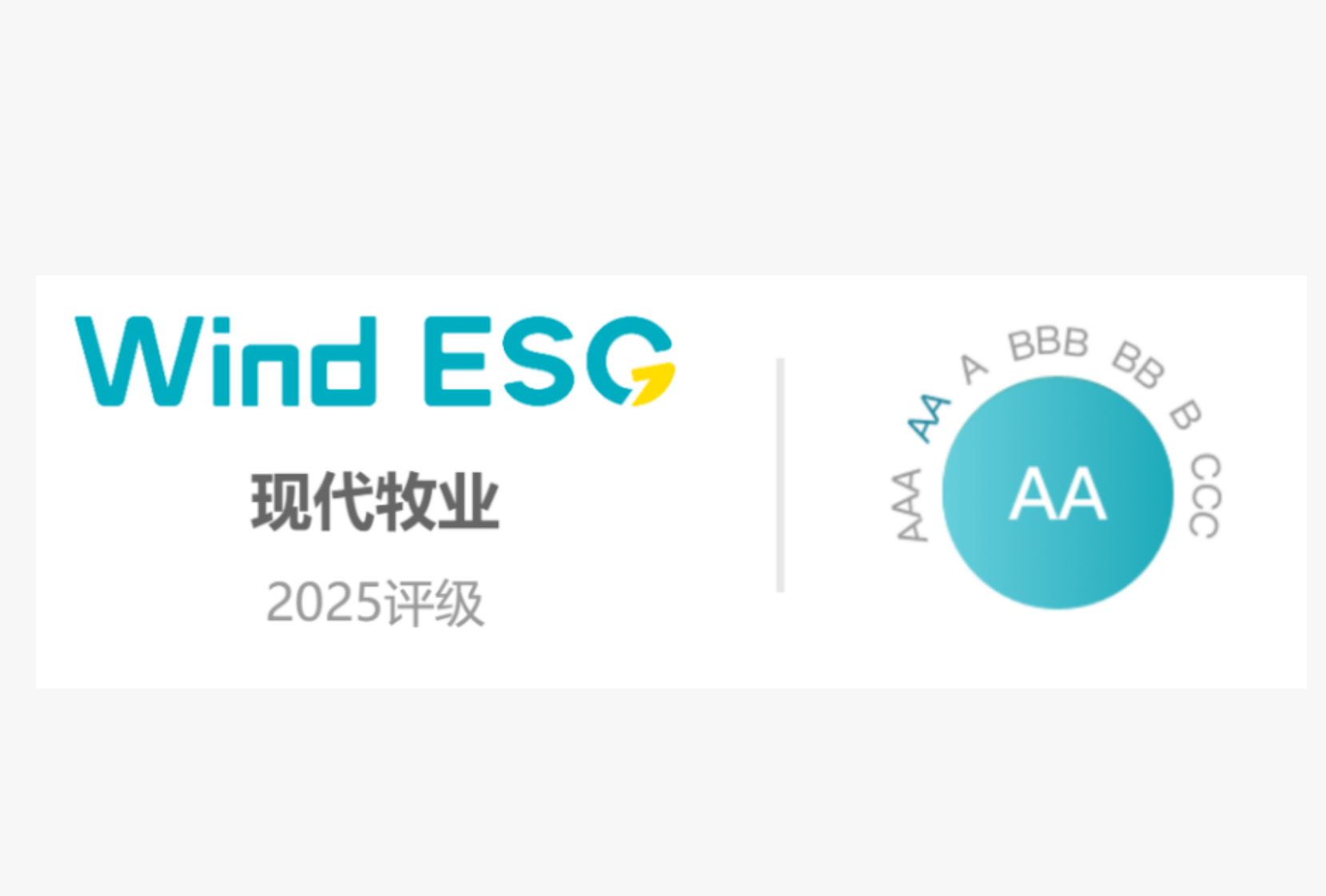 现代牧业荣获Wind(万得)上调ESG评级至AA级,领跑乳业绿色发展